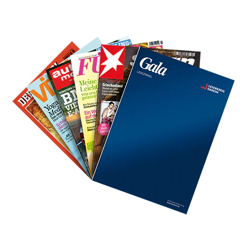 Teste den Lesezirkel 8 Wochen lang für nur 36 €. Du wählst 5 Zeitschriften, wir liefern sie jede Woche kostenlos zu Dir nach Hause.