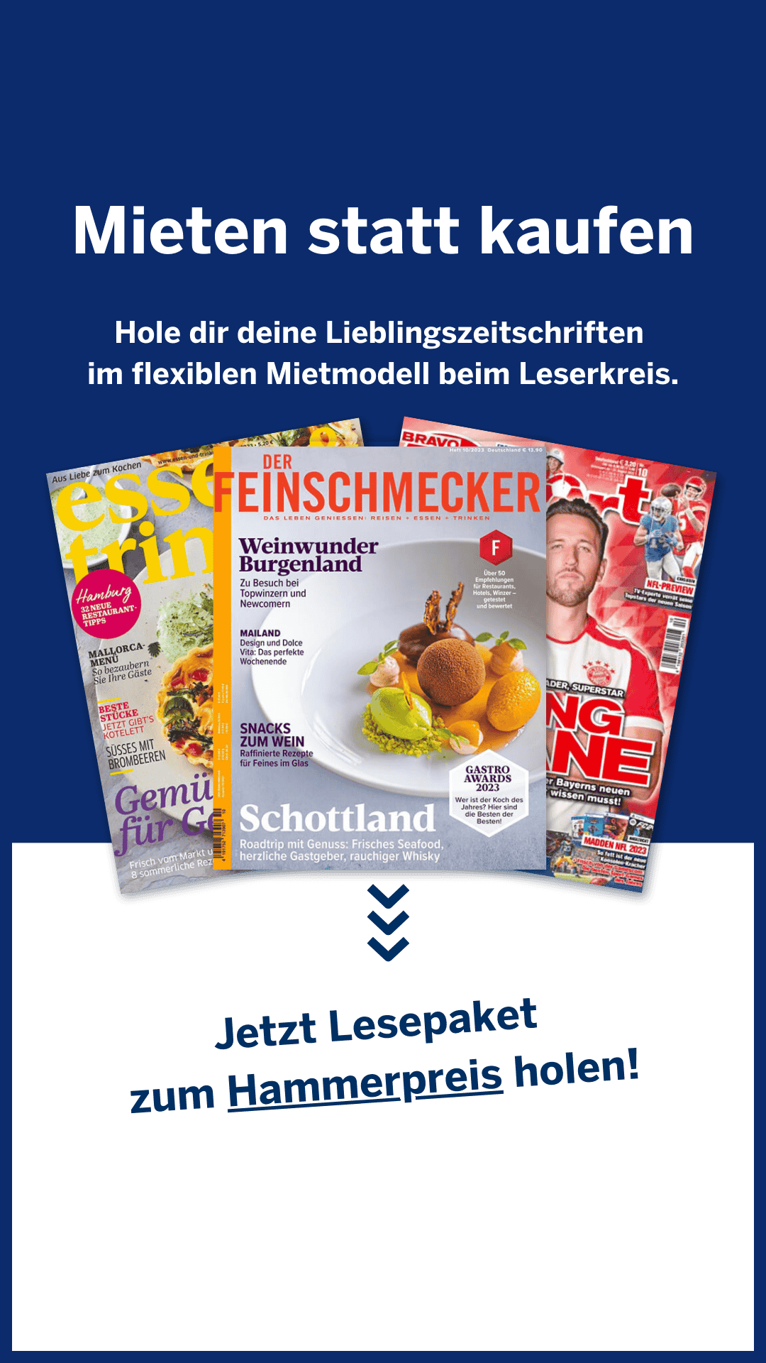 Mit unserem flexiblen Lesezirkel-Abo bleibst du immer up-to-date: Wähle deine Lieblingszeitschriften und erhalte die neuesten Ausgaben wöchentlich oder monatlich direkt nach Hause geliefert – ganz ohne Zusatzkosten.
